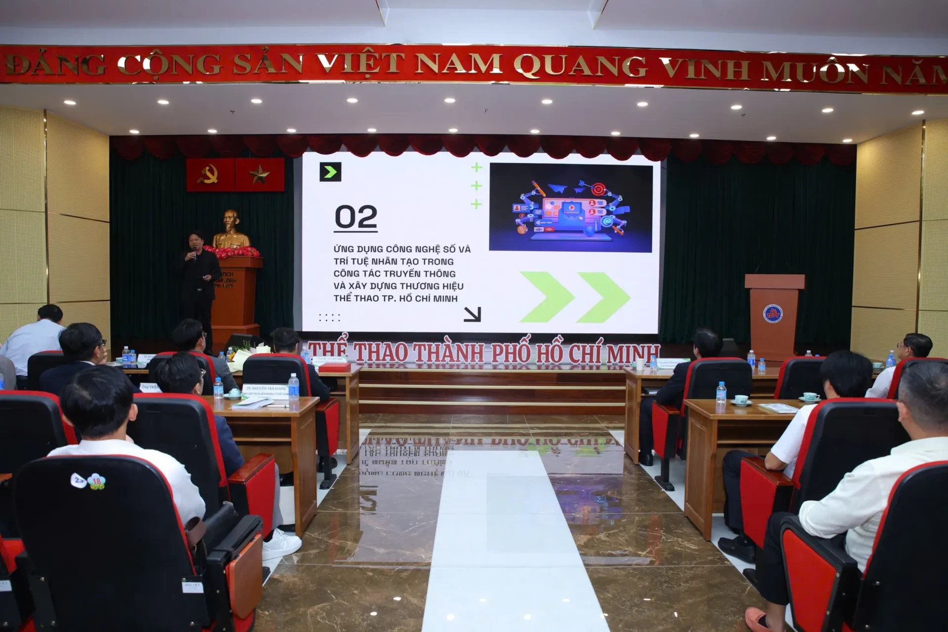 Hội thảo nhằm triển khai Chiến lược phát triển Thể dục thể thao Việt Nam đến năm 2030, tầm nhìn đến năm 2045, với mục tiêu xây dựng quy hoạch và chiến lược phát triển thể dục thể thao của Thành phố Hồ Chí Minh, phù hợp với yêu cầu phát triển kinh tế – xã hội và xu hướng thể thao toàn cầu. Phát triển thể thao thành tích cao, thể thao chuyên nghiệp, mở rộng hợp tác quốc tế, đồng thời nghiên cứu và ứng dụng khoa học công nghệ, y học thể thao. Thúc đẩy chuyển đổi số, ứng dụng trí tuệ nhân tạo (AI) trong huấn luyện thể thao hiện đại, nâng cao hiệu quả đào tạo vận động viên.