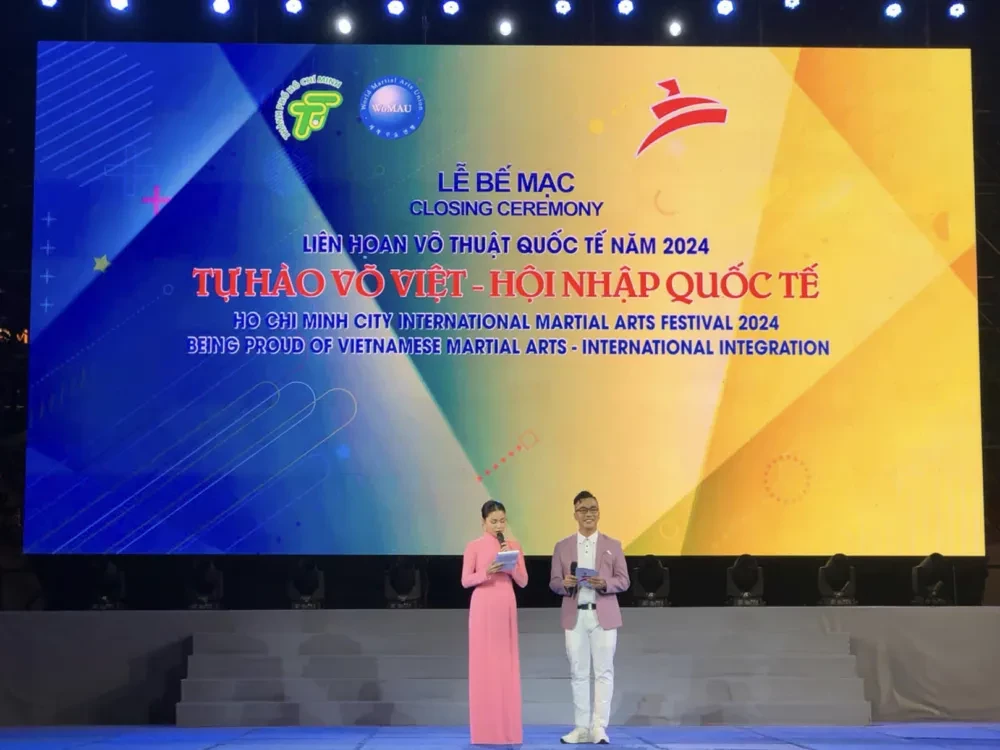 Tối 23/12, Sở Văn hóa và Thể thao Thành phố Hồ Chí Minh tổ chức Lễ Bế mạc Liên hoan Võ thuật Quốc tế Thành Phố Hồ Chí Minh năm 2024 với chủ đề “Tự hào Võ Việt – Hội nhập quốc tế” do Trung tâm Ca nhạc nhẹ Thành phố phối hợp với Trung tâm Huấn luyện và thi đấu thể dục thể thao TPHCM thực hiện.