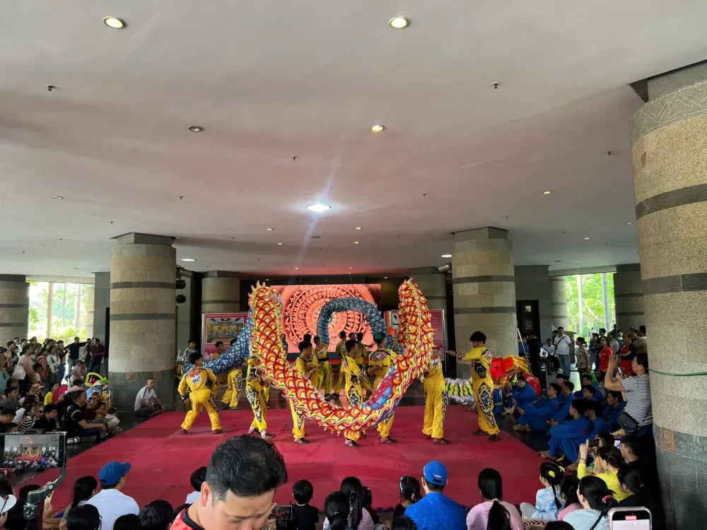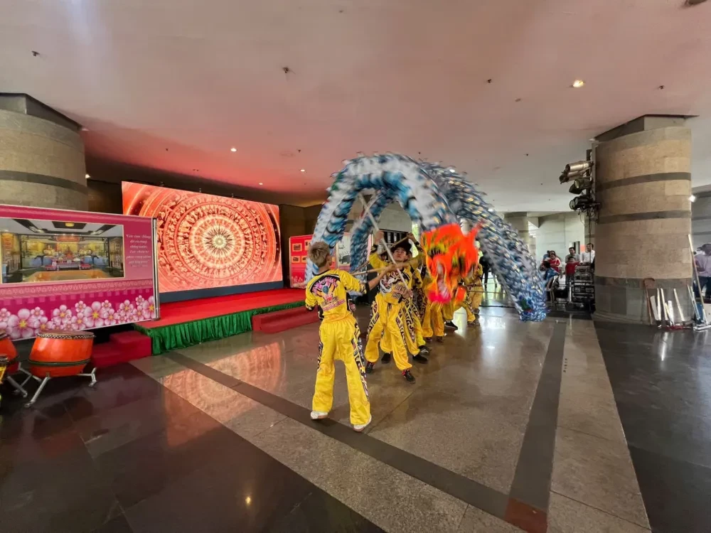 Màn trình diễn Lân sư rồng cũng để lại dấu ấn rực rỡ, góp phần mang đến không khí lễ hội rộn ràng, đặc trưng phương Đông giữa lòng thành phố hiện đại.