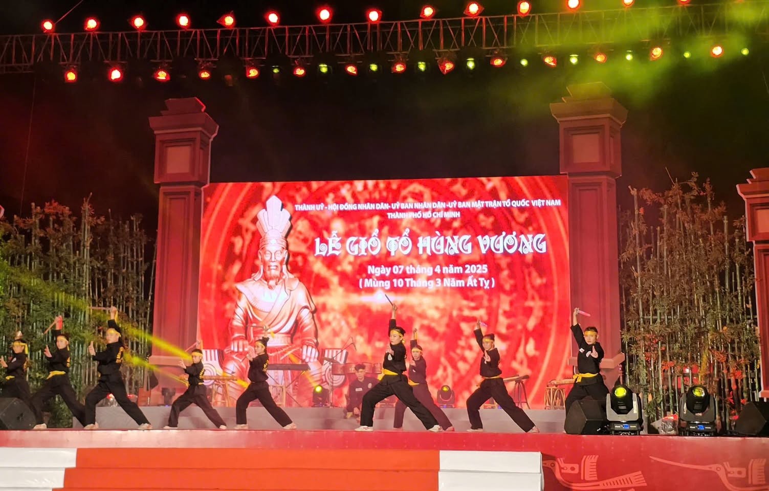 Tối 6/4/2025, tại khu di tích Đền Hùng (TP. Thủ Đức, Q.9), đội tuyển Võ cổ truyền thuộc Trung tâm Huấn luyện và Thi đấu Thể dục thể thao TP.HCM đã mở màn chương trình biểu diễn võ thuật trong khuôn khổ hoạt động chính nhân dịp Lễ Giỗ Tổ Hùng Vương.