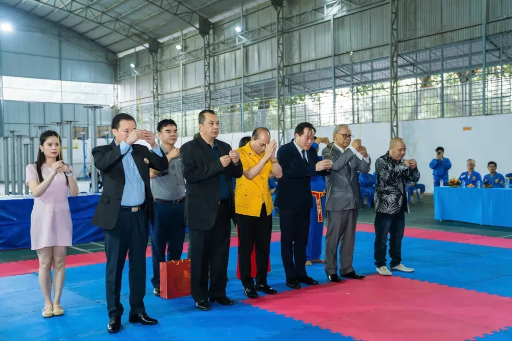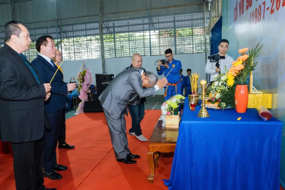 Buổi lễ dâng hương diễn ra theo nghi thức truyền thống của môn phái có sự tham gia dâng hương của các vị khách đến từ Vương quốc Campuchia.